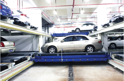 1.通過升降機的垂直升降和搬運器的平面往返運動,將車輛自動移送到多層平面布置的停車區(qū)域的立體停車設備;